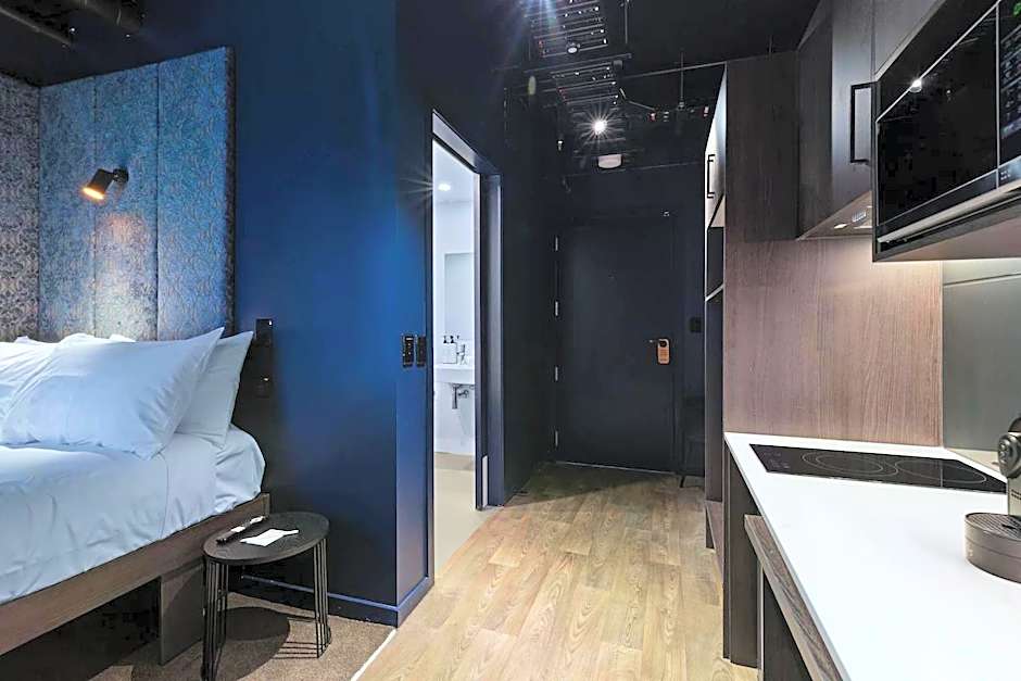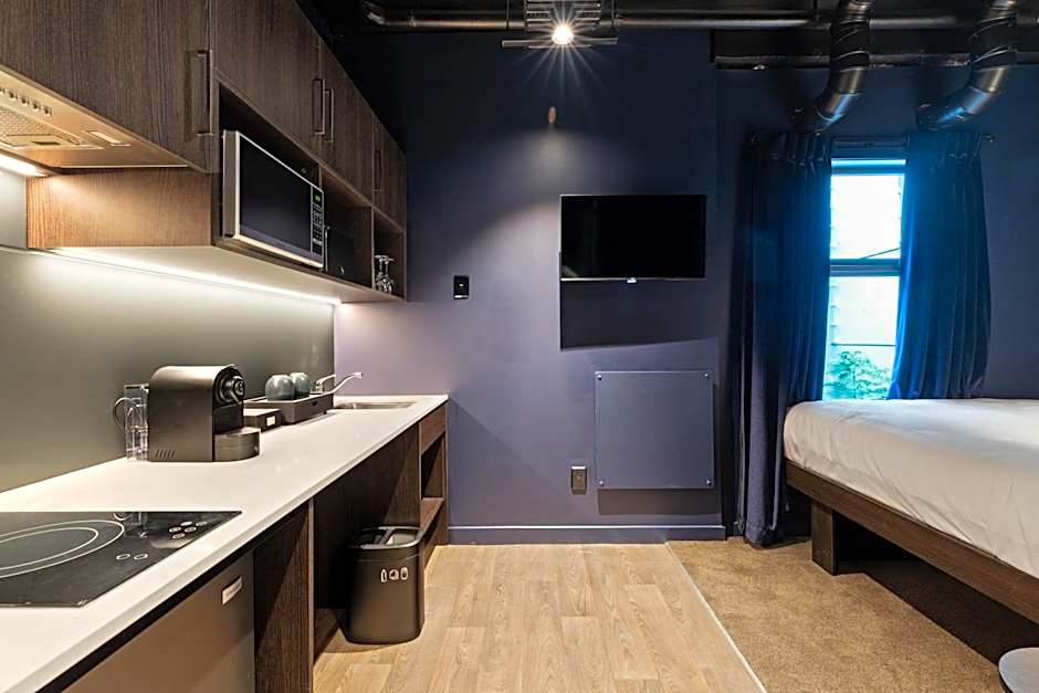 I was upgraded from a studio to a one bedroom when I arrived, which was appreciated! The room was very small and just perfect for a city stay. The shower was large, the water pressure average but hot. The decor was very dark all over, looks quite classy in the daylight but a bit depressing at night. A dim night light would be great. Blackout curtains were awesome for sleeping in and the bed was firm. Everything was clean and new. Multiple power points make charging every device easy. No problems with WiFi and worked and gamed without lag.