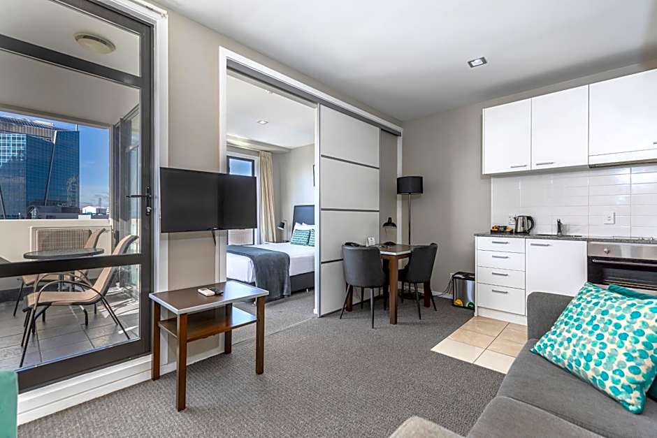Quest on Queen Serviced Apartments offers One-Bedroom Apartments that are non-smoking and have a size of 344 sqft. These apartments can accommodate 2 adults and 1 child and are equipped with 1 Queen size bed.