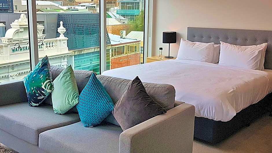 This Studio features expansive views of the Auckland skyline and Sky tower. It is spacious in size at 45 sqm and features a full sized kitchen, Samsung 55-inch Smart TV and unlimited complimentary high-speed WiFi. Complimentary welcome amenities include: - Nespresso coffee machine with coffee - A prestigious selection of Teas by Harney & Sons Please note that the bedding configuration and view are not guaranteed and will be confirmed upon arrival, subject to availability. There is no room for additional beds in this room type.