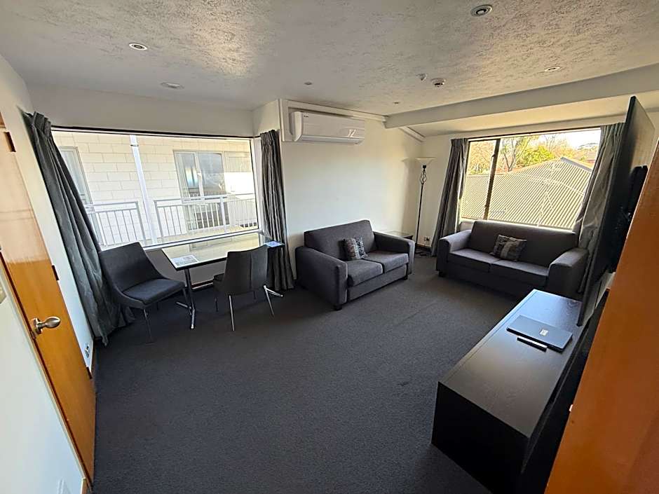 Ideal for families, the economy 2 bedroom apartment has more space. The Master bedroom has a Super King bed, the second bedroom has 2 single beds, allowing up to 4 people comfortable accommodations, with separate lounge. It has a fully equipped kitchen. Guests enjoy free secure WIFI & 65"Smart TV with Chromecast and free onsite parking. Heat pump heating and cooling. Two rollaway beds can be added to the lounge, for a maximum of 6 people.