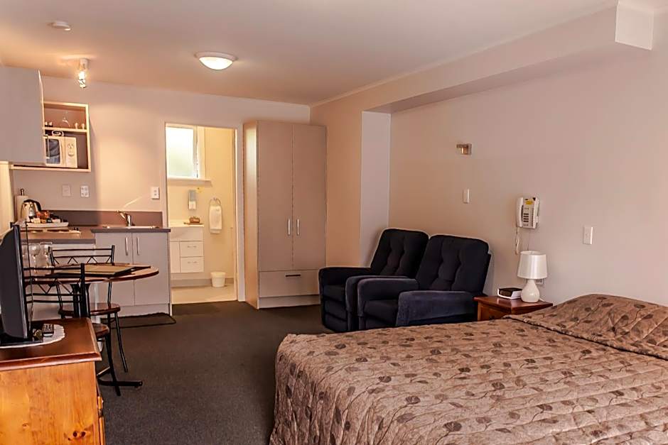 This executive 1-bedroom suite includes a king-sized bed and a double-sized sofa bed in the living area. There is a kitchen equipped with a refrigerator and a microwave. There is a dining table, an armchair, a 2-seater leather sofa and a 32-inch flat-screen TV with satellite channels. The bathroom has a shower. Free WiFi is available for multiple devices. Please note the price is based on 2 guests using the king-sized bed only. An additional charge of NZD 20 applies for use of the sofa bed. Maximum occupancy is 3. Please note the 3rd guest will be accommodated on the sofa bed.