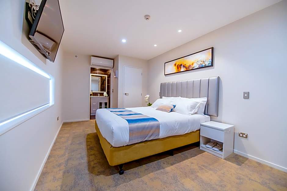 Very nicely finished modern room. We had a studio room with a small outside deck with outside furiture. The room was well appointed and had everything we needed for our stay. Good kitchenette. Nice bathroom. Comfortable king bed. All spotlessly clean. Lift available for upstairs rooms. Under cover parking available. Good location, not far from a variety of restaurants, shops, and a supermarket across the road. Not a big drive to the airport or the city. Very good value for moey.