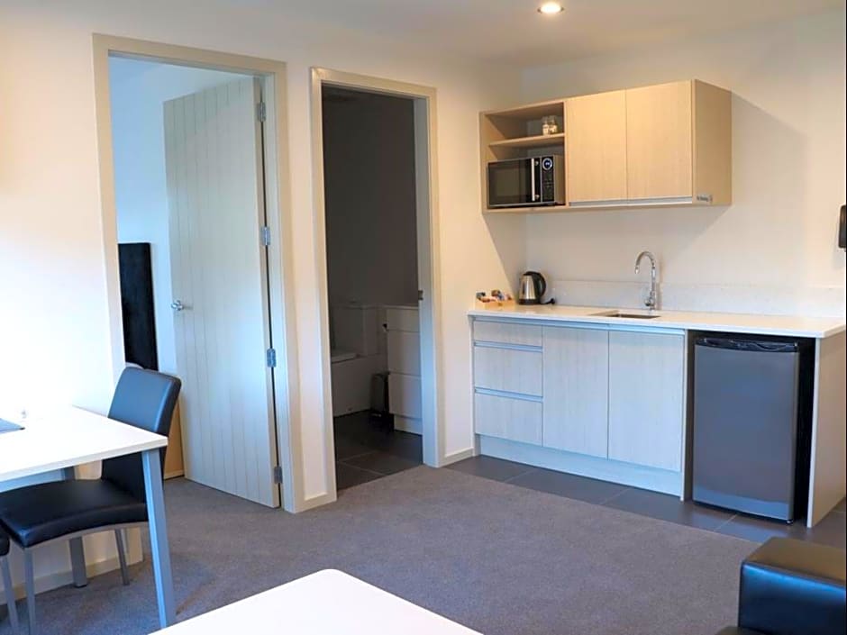 Guest rooms are designed for comfort and practicality, with kitchen facilities and soundproofing, while outdoor spaces like a terrace and garden provide a pleasant backdrop for any Christchurch visit.