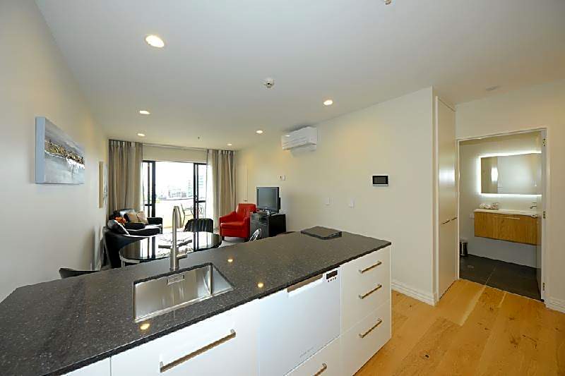 Absolutely gorgeous 2bed apartment. Beds super comfy and large. Lounge had enough chairs for everyone and comfortable. Wifi good. Kitchen so well equipped, not that we used it. Washing machine & dryer was handy. Bathroom had good size shower and great pressure. Balcony ran full length of unit with sliding doors from boh bedrooms and lounge. Handy mini mart 2min walk and fantastic coffee shop next to that. Also Quake City worth a visit is opposite coffee shop. Location was great, quite but walking distance to main city area. Would definitely recommend.