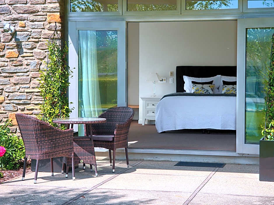 The property was gorgeous and the bedroom and bathroom suite spacious. There was plenty of room for luggage and also two comfortable chairs in addition to the bed. We had our own access out a private door and it felt luxurious. The scenery around the property was stunning and the hosts, Fiona and Alistair, were friendly and very helpful. We hired Alistair to arrange wine tasting for us and he did a superb job. He also answered zillions of questions we had about New Zealand. Fiona provided home-canned fruit for breakfast, which was delicious.