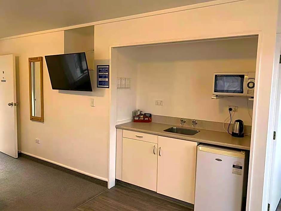 This studio has a queen-sized bed and a single-sized bed. It also includes an private bathroom with a shower and a kitchenette with a microwave, tea and a toaster. There is satellite TV.