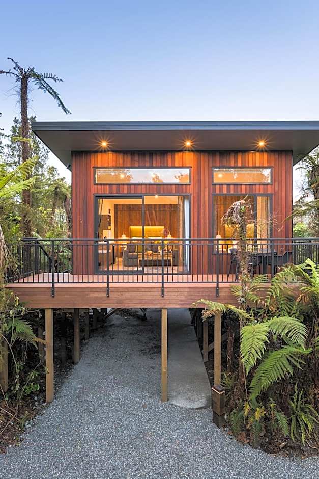 Gecko House is set within Gecko Village, a secluded area of Rainforest Retreat set among ponga ferns. Enjoy a garden and hot tub shared only by Gecko Village residents. The Gecko House has a spacious living and dining area and a fully equipped kitchen. All rooms open onto furnished outdoor decks.