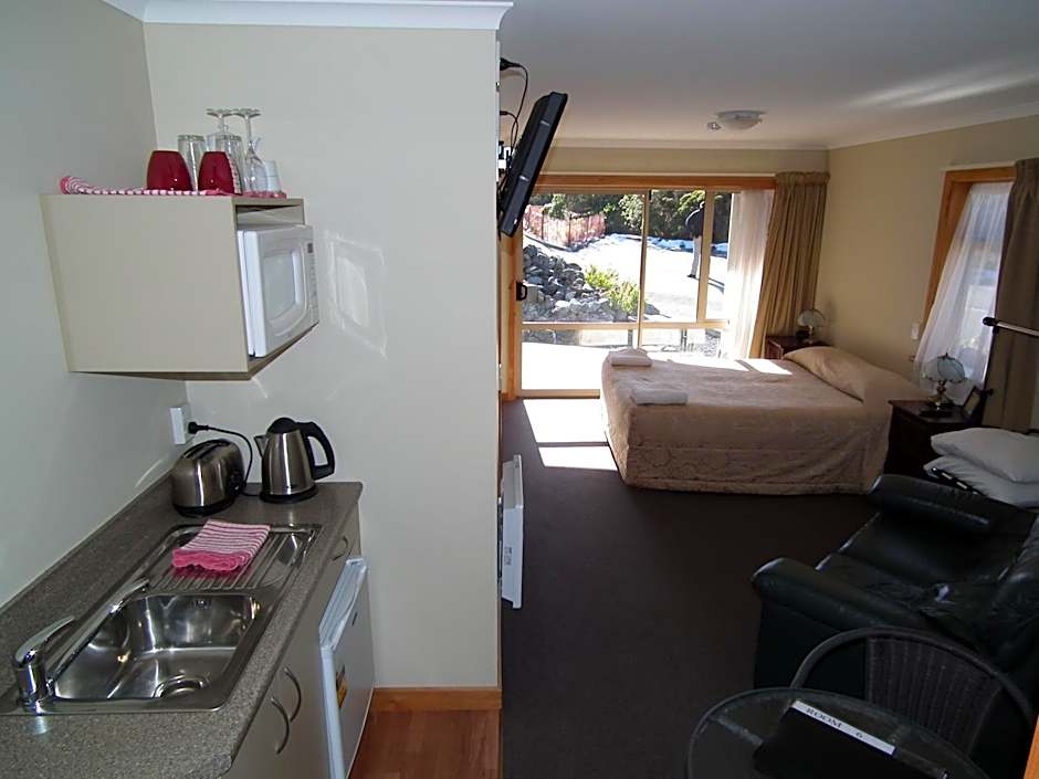 Located on the ground floor, this studio features fantastic views of Mount Cook from the covered patio. It features a flat-screen TV and kitchenette with microwave. Please note that the price is based on 2 guests. Please note that the third guest will be accommodated on a sofa bed. The sofa bed for a 3rd person can only be booked in combination with a king bed. Please note that you will need to contact us if you prefer twin beds.