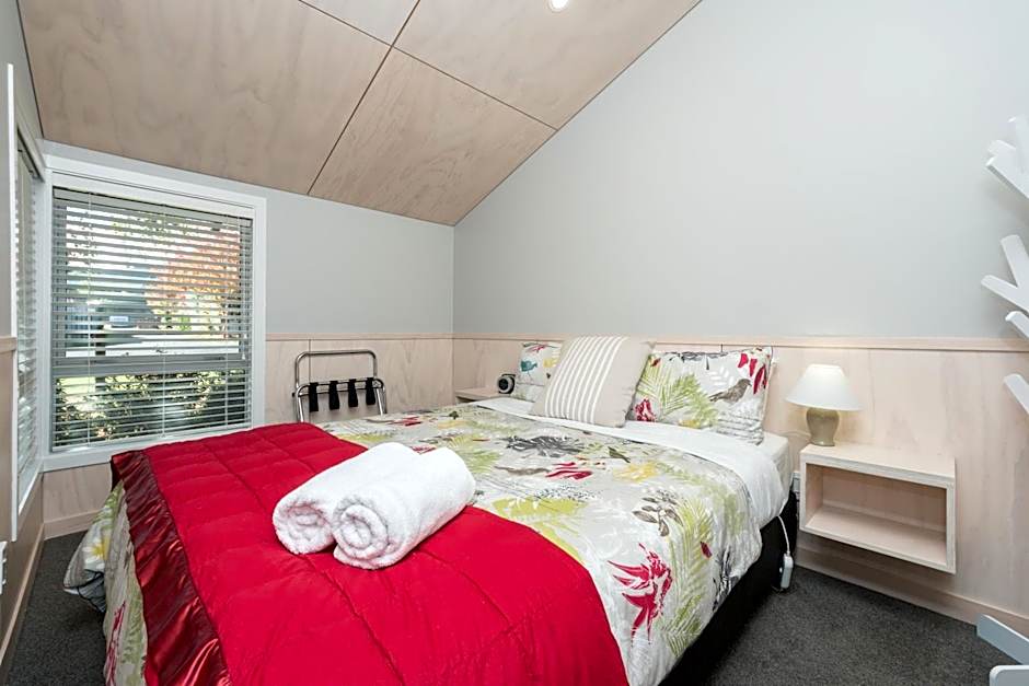 These contemporary 2-bedroom apartments are suitable for families, couples or groups exploring Hanmer Springs. Included is one bathroom with a double shower and toilet plus additional separate toilet. There is a fully-equipped kitchen with a dishwasher drawer, oven, cook top, microwave, electric fry pan and Nespresso coffee machine for you to make your own coffee, or you can visit reception for an Espresso. Chilled water and ice options are available from the large fridge/freezer. Enjoy satellite channels, Chromecast, Netflix or DVD's on a 55-inch Smart TV. Bluetooth speakers. and free WiFi are also provided. This unit features a gas fire in the open-plan living area and the heat pump offers air conditioning for those warm summer days. Step outside this north facing apartment onto a generous wooden deck, which is complete with a BBQ. You can also enjoy the outdoor landscaped dining area, which has an outdoor table and umbrella. Private wood-fired hot tubs may be booked from reception (before 17:00 specials may apply).