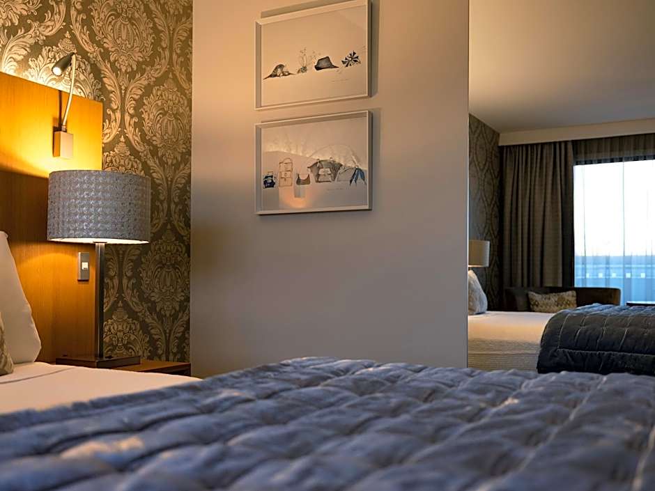 This contemporary room has 2 Sealy, luxurious queen-sized beds, luxurious bedding, a 48-inch flat-screen HD TV, Blu-tooth audio system and a spacious private bathroom with a walk-in shower and double basins. There are luxury guest toiletries and bathrobes as well as a mini-bar and tea/coffee making facilities.