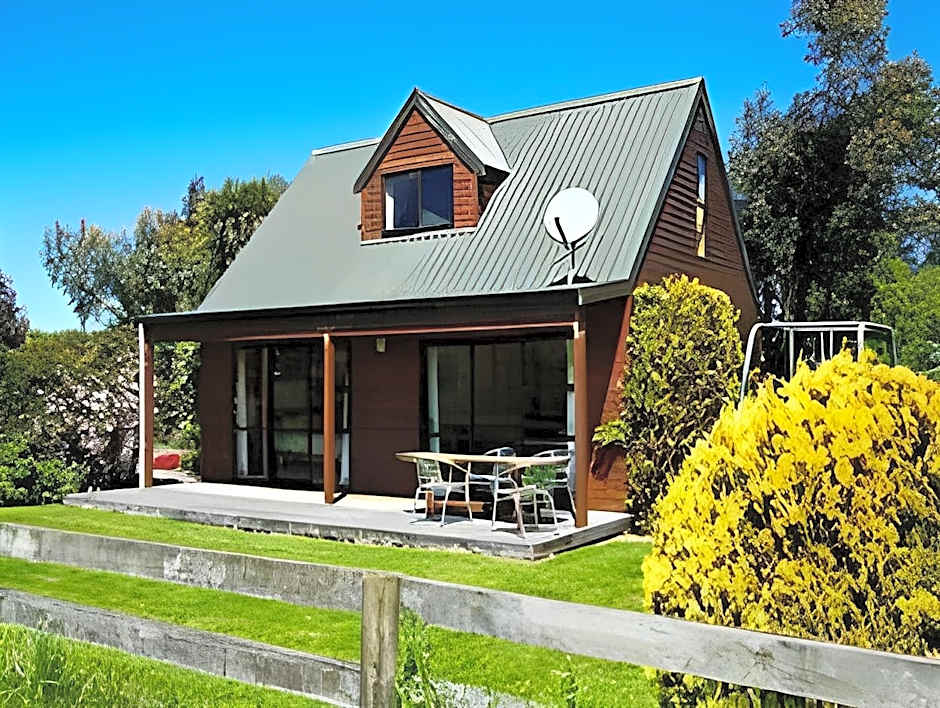 This cottage features an extra large bedroom upstairs and a bedroom, lounge area and kitchen downstairs. There is also a bathroom, a deck with a hammock and BBQ and a large private grassed area with mountain views.