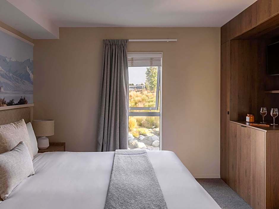 This spacious, spilled level, dual key, self-contained villa has full kitchen facilities, a dining table and lounge area, air conditioning, complimentary tea and coffee making facilities, a refrigerator, LCD TV, satellite channels, a DVD player, telephone and both a desk and a coffee table. There are armchairs, an alarm clock radio and a separate bedroom with a king-sized bed. A separate bathroom with a shower, heated towel rail and a hairdryer is included. The outdoor balcony overlooks the stunning Lake Tekapo. Internet is available for an additional charge.