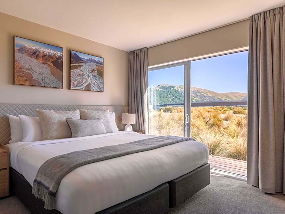This resort-style, 1-bedroom suite is spread over 2 levels. It features a spacious lounge as well as a full kitchen, dining area, air-conditioning, complimentary tea/coffee making facilities and a refrigerator. There is an LCD TV with satellite channels as well as a DVD player, telephone, desk, coffee table, arm chairs an alarm clock radio and 1 separate bedroom with a king-sized bed. There is 1 separate bathroom with a shower, bath, heated towel rail, hairdryer and ironing facilities. The outdoor deck has stunning views of Lake Tekapo.