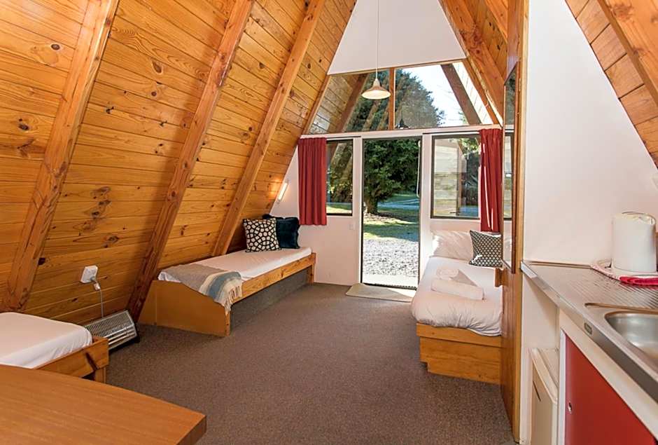 These unique chalets are ideal for budget conscious families or groups. Each chalet has a queen bed plus four singles. There’s also a bathroom and kitchen.