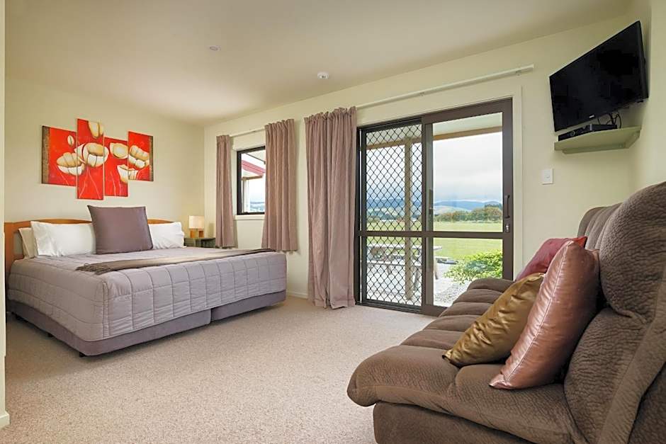 This studio features 2 bathrooms, and 2 lounge areas with TVs. It also includes a garden patio with rural views.