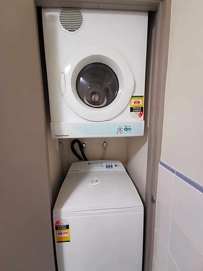 Great location Free parking Room was large with two good sized bedrooms with comfy beds and black out curtains. Room had a ceiling fan and a heat pump/air conditioner. Large living space for four adults. Balcony was good with small table and chairs. Dishwasher, washing machine and dryer provided. Had sky which had sports and movies. Spa pool and sauna and gym available. Trolleys for your luggage for the elevator. Elevators are a good size.