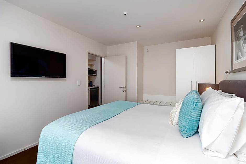Located on the top floor, this air-conditioned studio features 2 single-sized beds and a bathroom with Italian tiles and corner spa bath. There is a fully equipped kitchen with a microwave, dishwasher and quartz stone bench top. Relax with the 50" Smart TV with free Netflix or on the balcony with a table and chairs. Enjoy music on the iPod dock and stereo system. Complimentary internet is included.