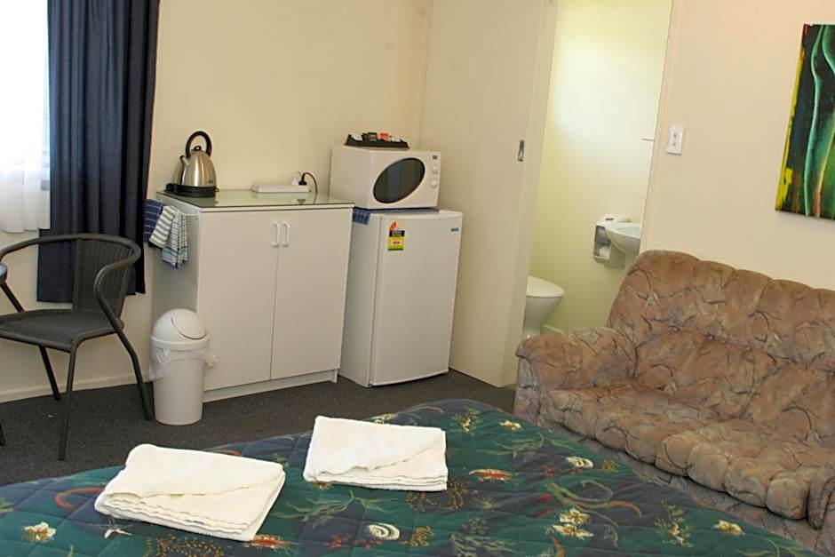 Very friendly host on arrival. Stayed 2 nights in the cutest motel room. Large living area, separate kitchen which was fully equipped separate bedroom and a separate bathroom area. Loads of cupboards and places to sit including a full size dining table and lounges. Electric blankets made for a cosy nights sleep. The grounds of the motel are immaculate with the gardens being very well maintained. There is lots of green space and even a little playground. This is an absolute gem of a place which should not be overlooked. Would not hesitate to book here again.