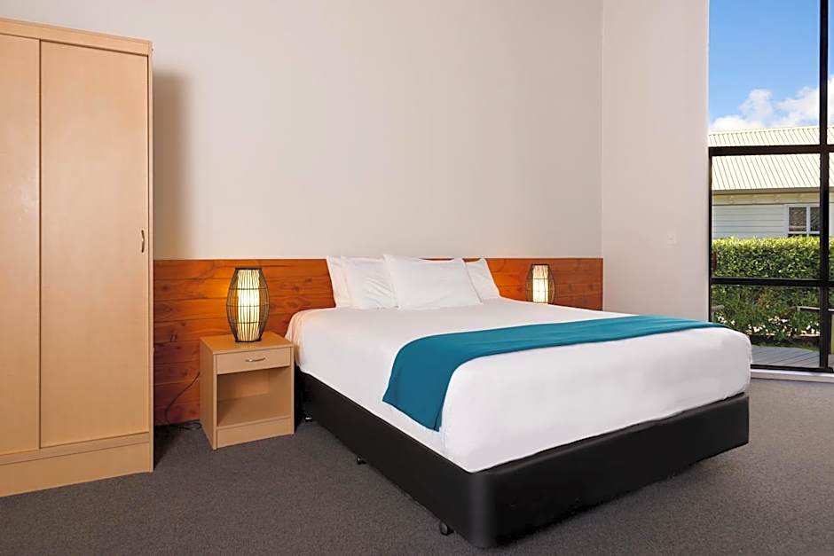 Two bedroom Beachfront Rooms The spacious Two Bedroom Family Rooms include a fixed Queen bed in one room and two single beds in the other. There is a separate lounge area. Each suite also comes with a private balcony with ocean views, or a patio that’s just a short walk from the sands of Hokianga Harbor. There is capacity for one (1) rollaway bed for 1 child 12 and under. There are no self-catering facilities.