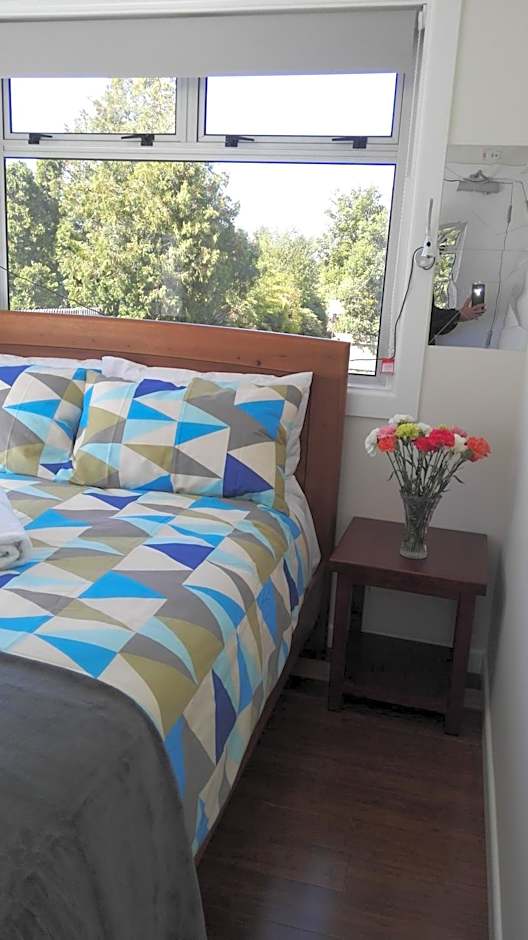 This double room has a queen-size bed, bedside cabinet, private bedside lamps, USB chargers and clothes hanging facilities. Guests are able to access large shared commercial kitchen, lounge area, laundry facilities and renovated shared bathrooms with hairdryers.