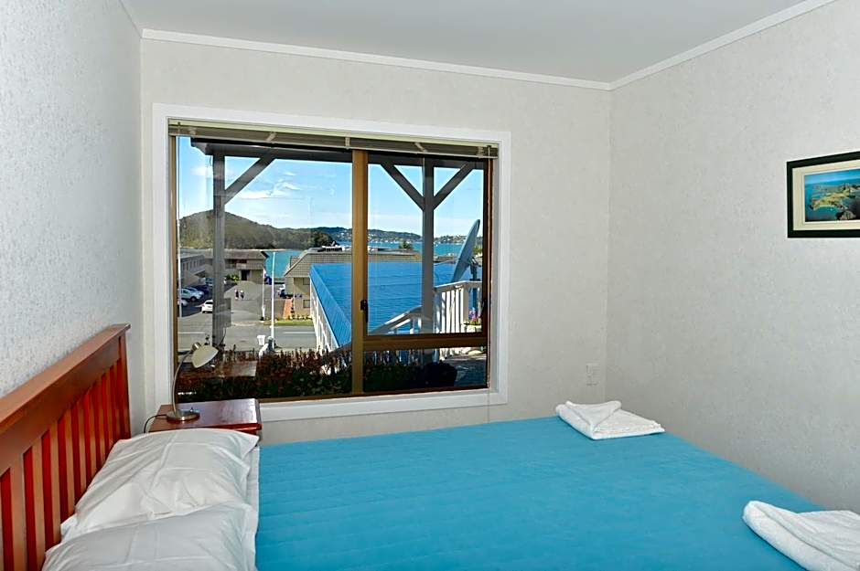 This spacious self-contained studio features a private balcony with outdoor seating where you get glimpses of the bay and town views. It has an private bathroom and separate kitchen with fridge, cook top and microwave, as well as a seating area with recliner chairs and 43" flat-screen satellite TV. If you are booking for 3 guests (including children/infants) please make sure you specify numbers in the booking.