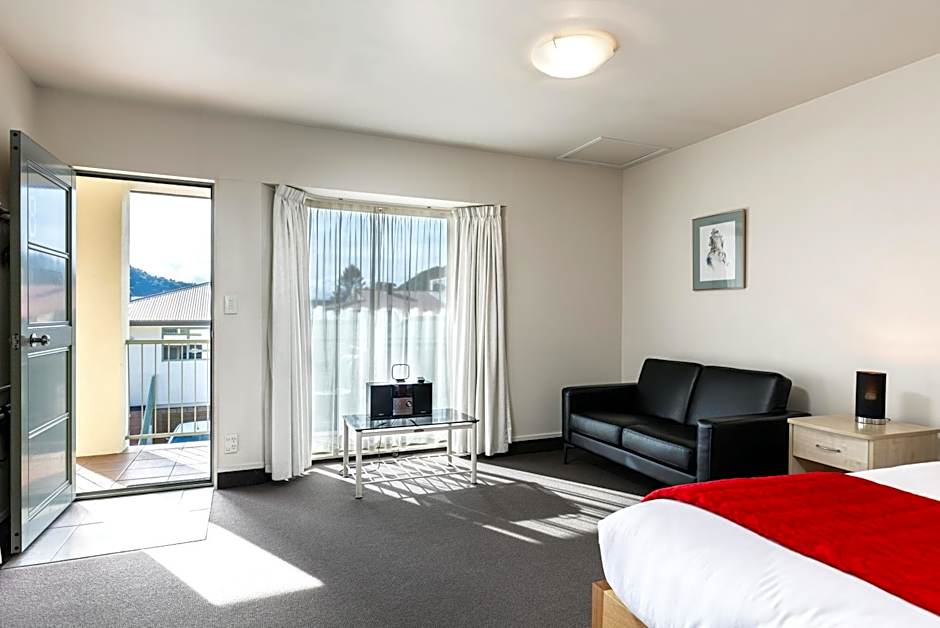 The hotel was in a good location. We stayed in two different rooms on two separate dates during our trip to New Zealand. The first time, we had a Standard King Studio on the ground level. There was outdoor seating in front of the unit, but we didn’t use it since it was right next to the parking lot. The second time, we stayed on the upper level in an Executive One-Bedroom Spa Unit. It had a separate bedroom with a queen-size bed. We enjoyed both the room and the spa bath. It was nice to be on the upper level.