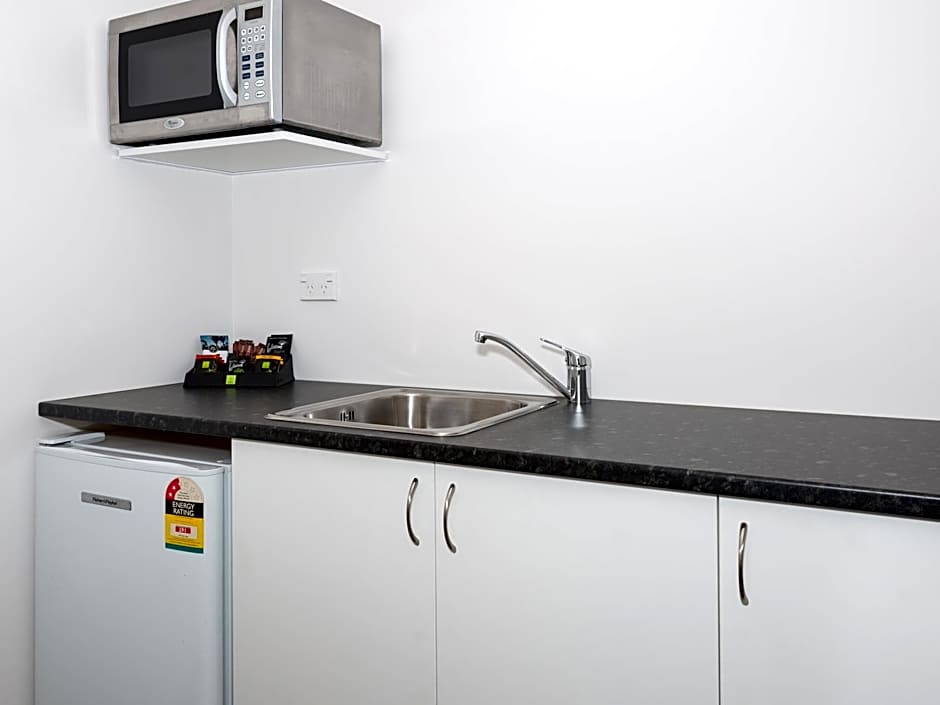 This unit is located next to the laundry. It is a quiet room featuring a seating area, toaster, jug, microwave and fridge. Please note there are no views or cooking facilities. Access to the unit is through the car park area.