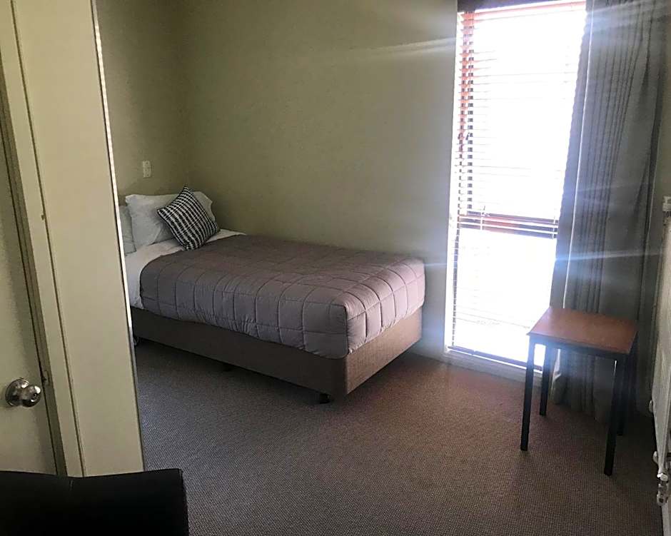 This spacious apartment offers lovely views of Lake Wakatipu and the Remarkables Mountains. It features a studio kitchenette room with a queen bed and single bed, flat-screen TV, a separate annex with a single bed, and another bedroom with a queen bed and lake view. There are two bathrooms. Guests enjoy 2GB of free WiFi provided per day.