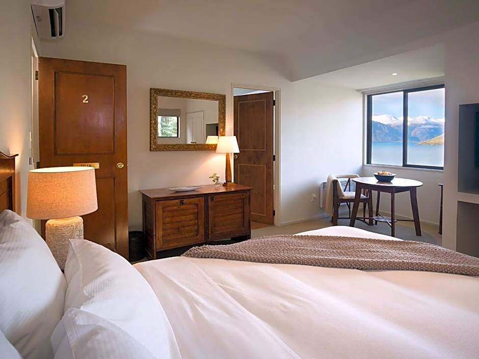 This suite features mountain views, native New Zealand crafted furniture, a flat-screen TV with satellite channels. There is a double wardrobe, tea/coffee making facilities, a writing desk and a sofa as well as a mini-bar with complimentary nonalcoholic and alcoholic beverages. The private bathroom features a shower and bath and underfloor heating.