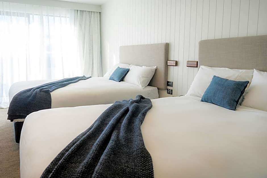 Now let's talk about the rooms. Each room at Kamana Lakehouse is designed with your comfort in mind. The Twin Room – Remarkables – Mountain View boasts a spacious 323 square feet, accommodating up to 3 adults and 2 children. With 2 queen-size beds, this room offers ample space for a great night's sleep. If you're looking for a courtyard view, the Twin Room with Two Queen Beds - Courtyard View - Kamana is a perfect choice. This room, with its 280 square feet, can also accommodate 3 adults and 2 children.
