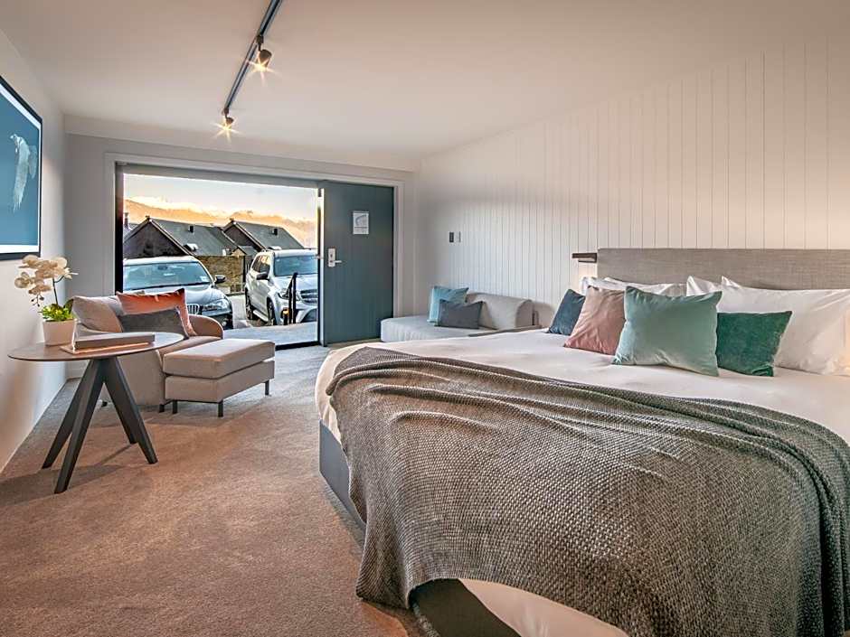 This room features a private terrace and views of the Remarkables. It offers an en suite, Premium super king-size bed and a contemporary design, with wall-to wall-windows. Also included is a semi-private outdoor seating area.