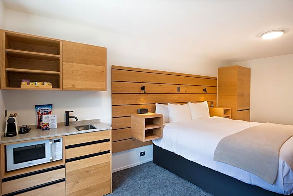 Located on the first floor, this studio features lake and mountain views out across Lake Wakatipu & Queenstown Bay, a Super King size bed and modern kitchenette with a microwave, toaster and Nespresso coffee machine. You can enjoy a glass of wine as you watch the sunset from your room. Unlimited WiFi access is provided.
