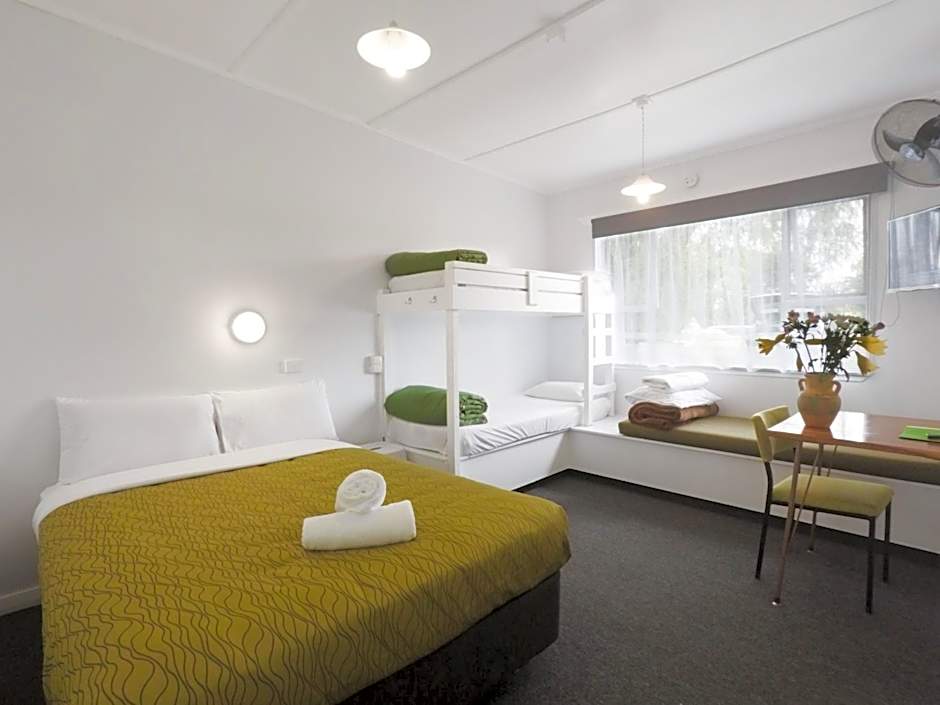 This self-contained 2-bedroom unit has a bedroom with a queen-sized bed and another bedroom with 3 single beds. There is also a lounge/kitchen area with 1 set of bunk beds. Meals can be prepared in the kitchenette, which has a stovetop, a refrigerator, kitchenware and a microwave. There is an electric kettle, a carpeted floor, a dining area, heating, a flat-screen TV and a small balcony, as well as a private shower and toilet.