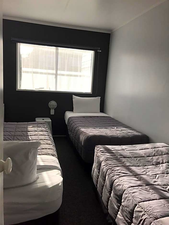 This fully self-contained 1-bedroom cottage has 1 queen bed in the lounge/kitchen area and a separate bedroom with 2 single beds and 1 overhead bunk bed. There is a private bathroom with a shower and a toilet. There is also a small roofed balcony.