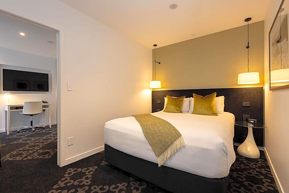 Indulge in the ultimate blend of space and luxury in our Two-Bedroom Executive Suite. Designed for comfort and flexibility, each bedroom features its own flat-screen TV, luxury linens, and down pillows and duvets. One bedroom features a sumptuous queen bed and a private ensuite, while the second offers a choice of a king or twin single beds. This expansive suite includes two beautifully tiled bathrooms, both with monsoon rain showers, and one with a deep soaking bath—creating the perfect retreat for relaxation. Air conditioning in each room, speaker-capable phones, and designer bathrobes ensure a restful and indulgent stay. Stay connected with complimentary WiFi and a Kube clock, while thoughtful amenities—including a mini-bar, microwave, plunger coffee, and in-room safe—enhance your experience. Spanning 54sqm, the Two-Bedroom Executive Suite accommodates up to five guests, including children, making it an ideal choice for those seeking extra space and refined comfort.