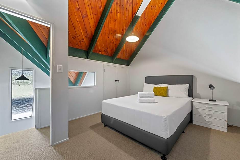 This spacious apartment has a queen-sized bed in the lounge area and a queen-sized bed on the mezzanine floor. There is a well equipped kitchenette, bathroom with shower and a private courtyard with a spa pool.