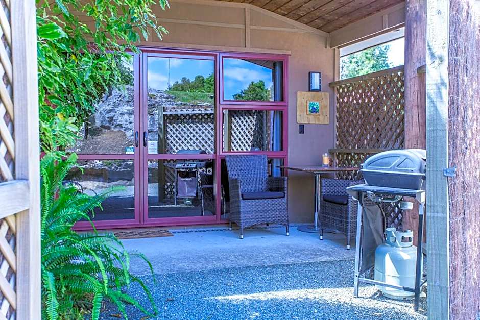 Of the dozen plus properties we've stayed in in New Zealand over the last month, our 3 nights in Chalet Kereru at The Rocks was the best. It is outstanding. The tranquility of the garden and sitting out area, complete with the very much recommended outdoor bath was sublime. Watching birds flit in the trees , a passing hedgehog wandering through. Inside, the room was spacious and the organisation of all the amenities in an economical way quite impressive. We lacked for nothing and if we did the owners found it for us - pegs and a rotary washing line for example when the airer was full. Nothing is too much trouble and the advice for trips is excellent too - even down to Molly B's for lunch. The Rocks is a walk away from the town but feels a world away and had everything needed for self catering including a barbecue.