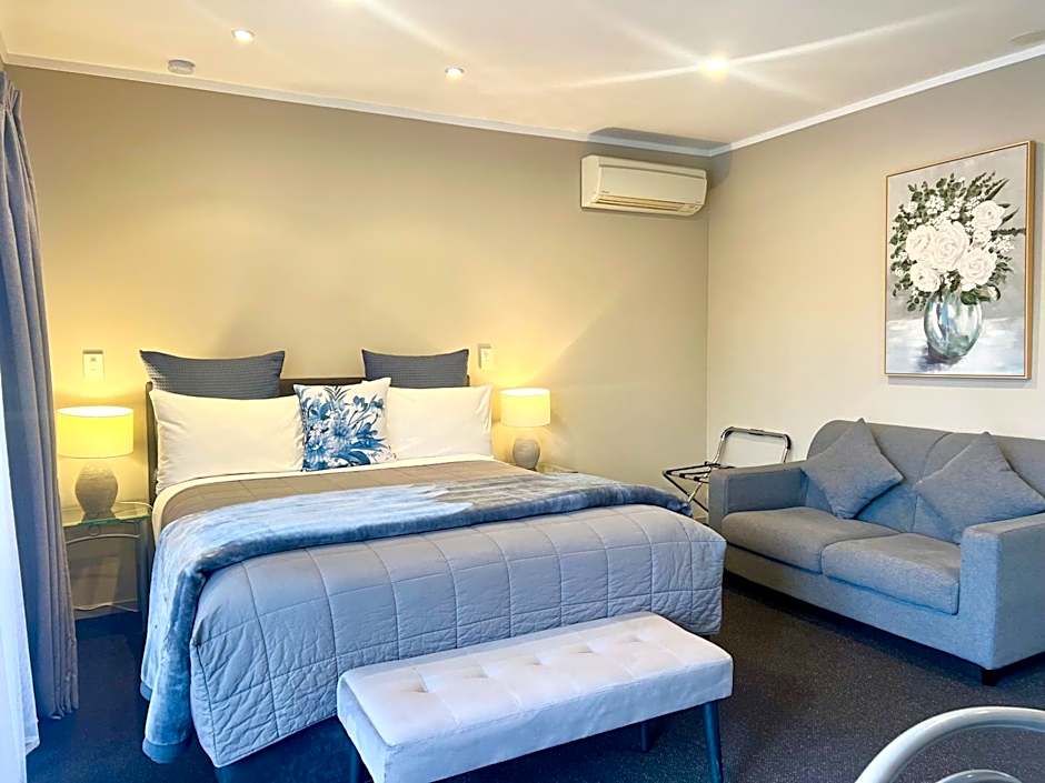 The Premier One-Bedroom Suite with Spa Bath is a luxurious choice, featuring a generous size of 517 square feet. With a Queen size bed and two Twin beds, this suite can comfortably accommodate four adults. Enjoy a relaxing soak in the spa bath after a day of exploring Taupo's attractions.