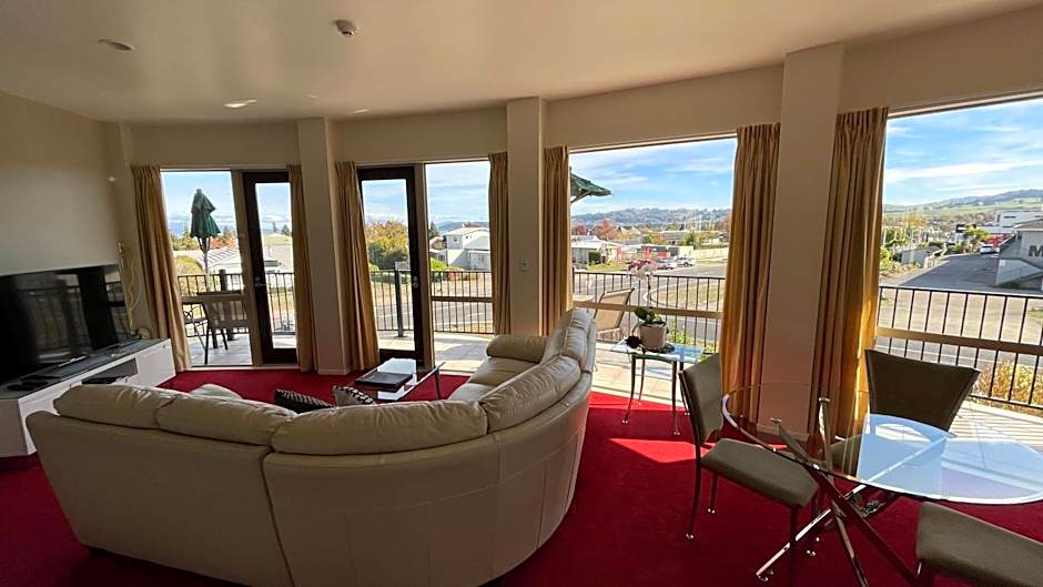 This one-bedroom luxury suite features a super-king bed in its bedroom, a very large lounge with 270 degree balcony with great lake, mountain and city views. A hot spa bath and separate bathroom with shower. Air-conditioned and large flat-screen TV. Suitable for a couple. Adult only.