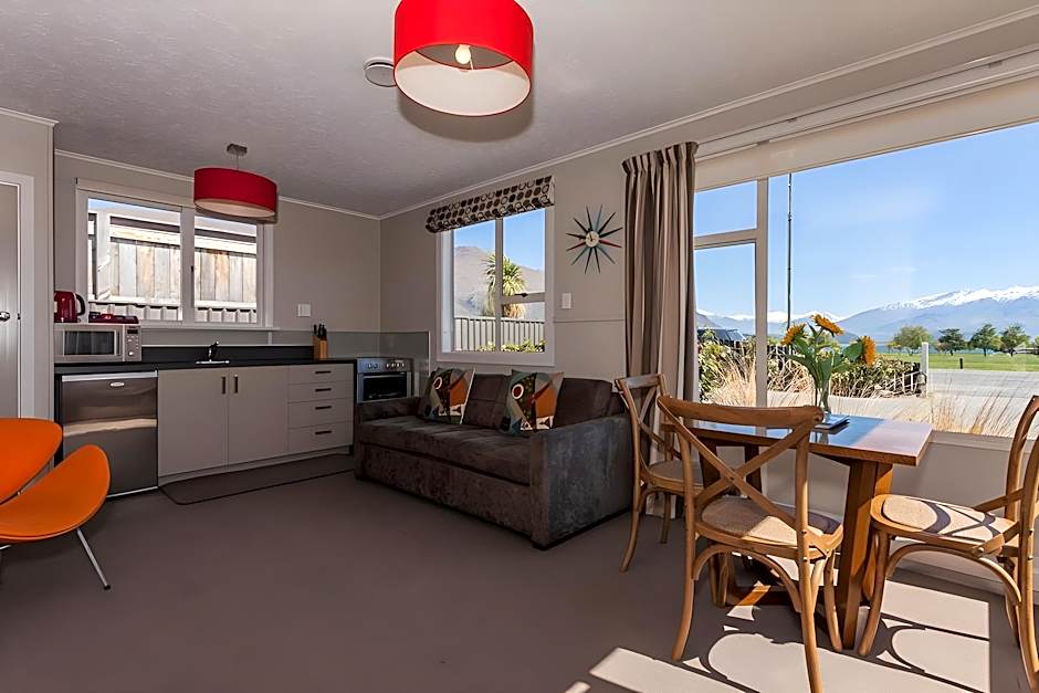 Enjoy views of Lake Wanaka and the surrounding mountains. This apartment offers a fully equipped kitchen and a lounge area with a sofa and an LCD TV.