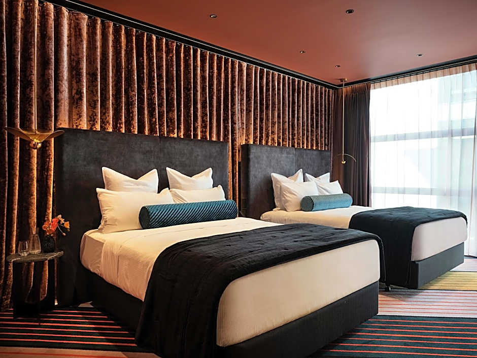 The hotel offers a variety of room types to suit your needs. If you're traveling with friends or family, the Habitat Twin room is perfect, accommodating up to 3 adults with its 2 double beds. For couples seeking a cozy retreat, the Oasis King room provides a spacious and comfortable stay, with its king-size bed and ample room size of 398 sqft. Alternatively, the Blush King room offers a stylish and modern setting, complete with a king-size bed and a room size of 377 sqft.