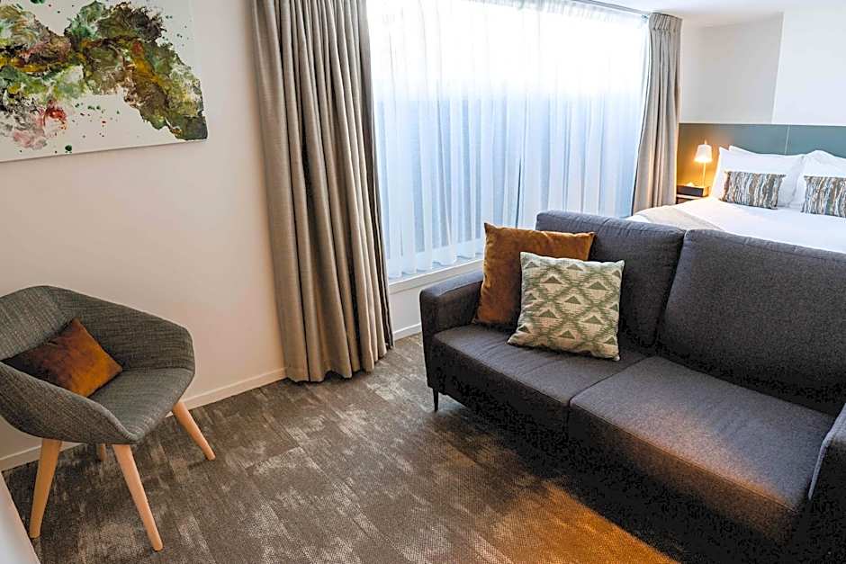 The Sojourn Riddiford is quite new. The room facilities are excellent, they've thought of everything you'd need; cooking facilities, dishwasher, microwave, iron & board, coffee machine, kettle, crockery, cooking utensils, pots etc. and cutlery even welcome chocolates in the room. Nice sized rooms which are exceptionally clean and very quiet. The hotel is also accredited for it's environmental efforts. There is no on-site dining but there is a large supermarket very close by and some cafes / restaurants within easy walking distance. Breakfast is delivered to your room and is a very generous offering. Buses right at the front door run to the city centre. Taxis are available from the hospital rank across the road. The city centre is approx. 10 mins by car, the airport approx. 15. On site parking is available for a reasonable fee. I've rarely experienced such helpfulness and friendliness from hospitality staff. They went to the trouble of rining before my stay to ask if I wanted to order breakfast. Everything was clearly explained via email, txt message and phone once my booking was confirmed - parking arrangements, breakfast etc.