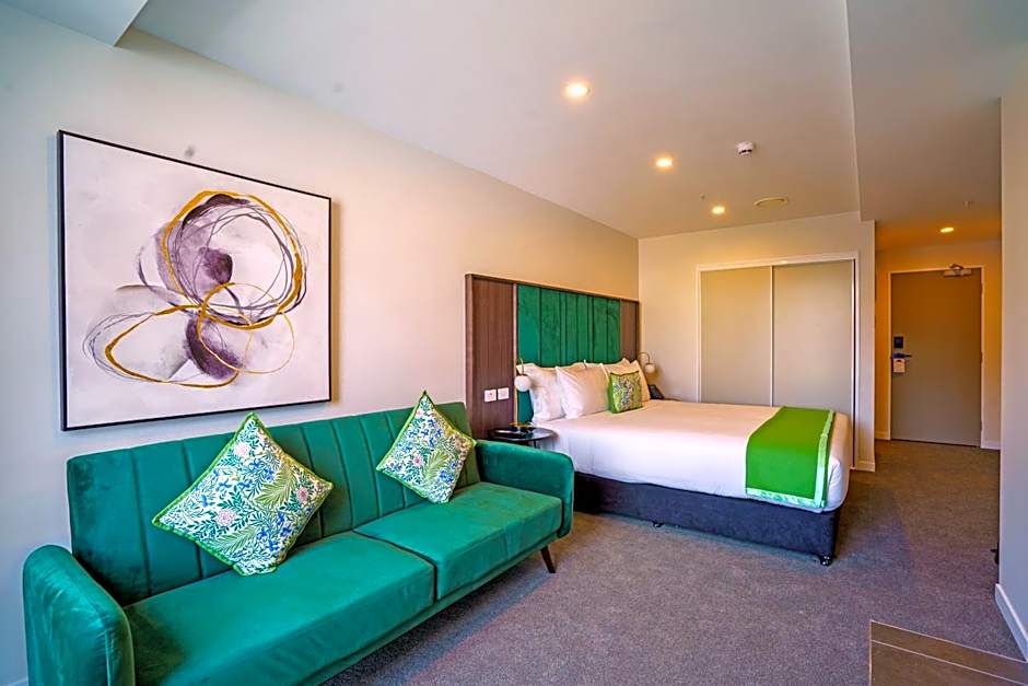 Spacious, apartment-style layouts invite travelers to stretch out after a day of exploring Wellington. The lineup includes Deluxe Apartment, 1 Bedroom; Studio; Executive Studio; Standard Apartment, 1 Bedroom; Deluxe, King; and more, designed for different group sizes. The Deluxe, King configuration can accommodate up to 4 adults and 3 children, with a king-size bed at the heart of the space.