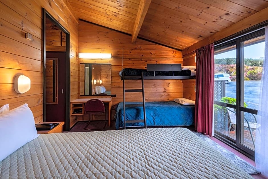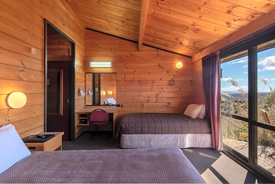 We had storms during our visit - did not get to enjoy the view from our cabin though there was still a bit of the mountain that was seen. Reception was closed when we got there but re opened beforr 3pm and check in was smooth and easy. The hotel is right next to Taranaki Falls Rack entry and other walking tracks which is handy for those who are going hiking. Cabin and facilities are dated but still cozy. We paid about $300 a night but I guess this was due to staying during Easter weekend. Beds weren't too bad. There were more than enough pillows, extra beddings, sheets, towels, hand towels. Our cabin had enough space for us 3. Heater and water pressure were adequate - we visited in autumn. There was a full size fridge, cook top, cooking utensils, forks, plates. Toaster, microwave, kettle. It was quiet at night. During the day, just lots of activities going with people leaving and arriving. Just like any other hotel / motels. Buffet breakfast was $27 for adult, kids are cheaper. It was acceptable. It is walking distance to the visitor centre and about 12 minute drive to the ski lifts. In summation, we had a pleasant stay. No issues at all. I would stay there again given the chance just cause of its proximity to the walking tracks and the view on better days.