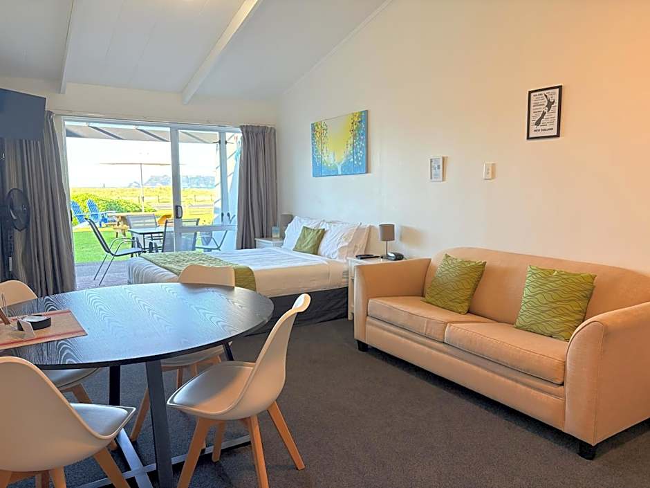 Great location with free parking. Only an 18-min walk to the main town Centre, and right across the road from the beach. Generous sized-rooms with full kitchen facilities, and good shower pressure. Met Brad on arrival, who was very welcoming & friendly. Kindly upgraded us to an upstairs room (203), gave us some milk, and provided us with beach towels & a shovel for Hot Water Beach the next morning. Lovely stay - highly recommend!