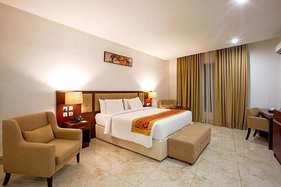 Nestled just 1 mil from the vibrant heart of Wuse, JOHNWOOD HOTEL by Bolton offers an indulgent escape with a touch of luxury. This 5-star haven is perfect for travelers seeking comfort and convenience, featuring a sparkling outdoor swimming pool for those refreshing dips, and a fully equipped fitness center to keep up with your workout routine. Relax in soundproof rooms with modern amenities, enjoy a complimentary breakfast each morning, and unwind at the bar or spa facilities (available at extra charge) after a busy day exploring Nigeria’s bustling city.