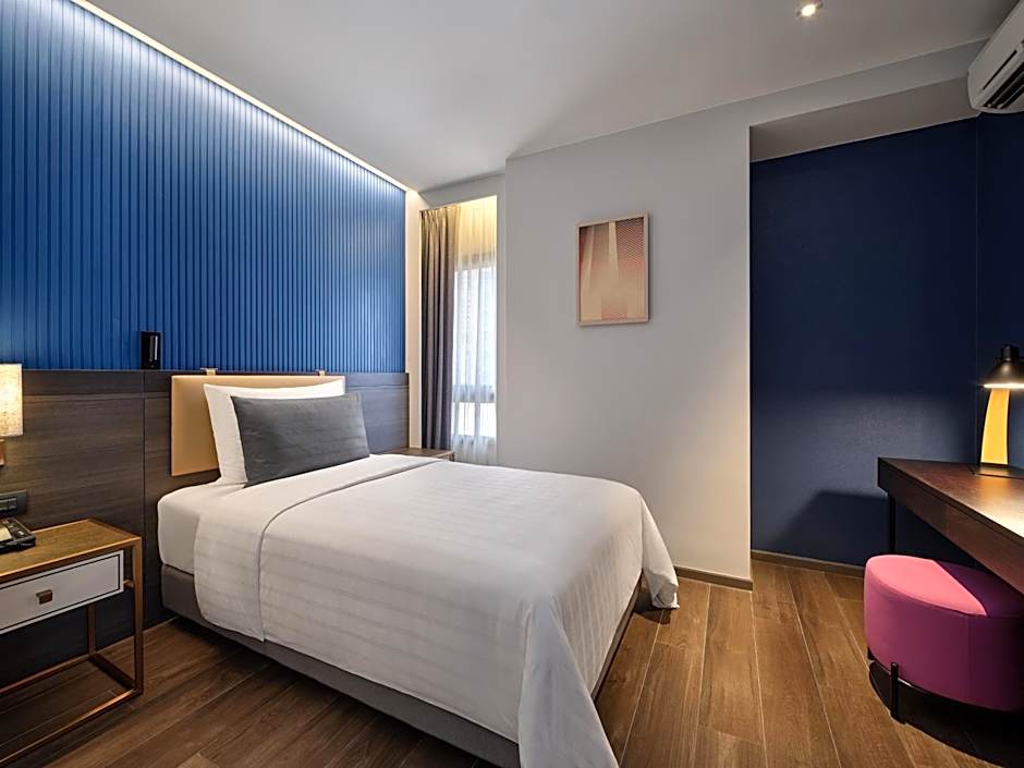 Plassert under Bangkoks urbane glød innbyr eiendommen til avslapning med et utendørs evighetsbasseng kun for voksne, åpent hele året. Det er et bassengområde som kombinerer en strømlinjeformet, minimalistisk estetikk med ekte bysol, og ligger bare noen skritt fra et soldekk og en terrasse hvor samtaler glir inn i kvelden.