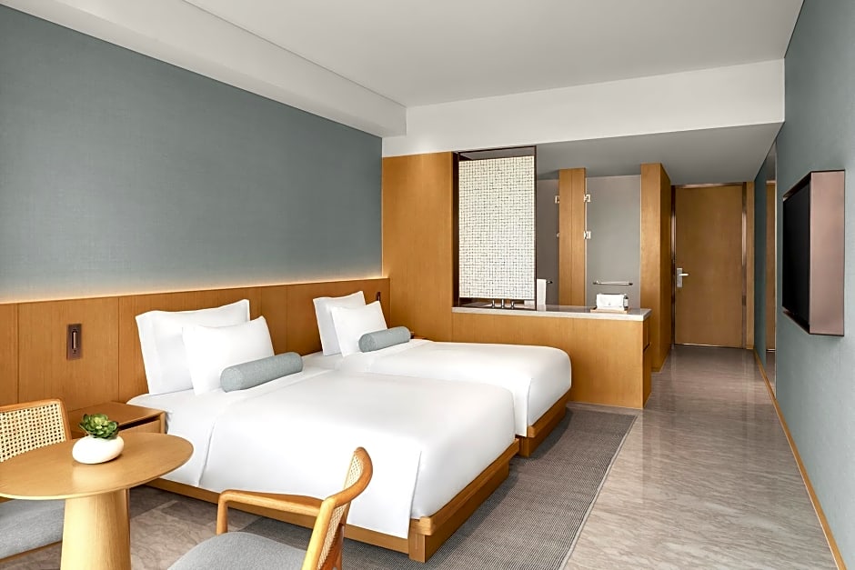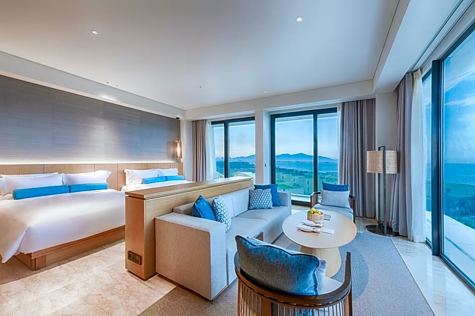 Fire utendørsbassenger byr på ulike opplevelser: to rene barnebasseng med grunne partier, et basseng kun for voksne med grunt parti og naturskjønn utsikt, samt et evighetsbasseng for alle aldre med grunt parti og utsikt. Spisesteder på stedet inkluderer Dining M som serverer pizza, lokale retter og asiatisk mat; Bistro M med pizza og sjømat for familievennlige måltider; Bar M for en moderne atmosfære; og Pool Bar som gir en moderne-romantisk bassengside‑stemning.