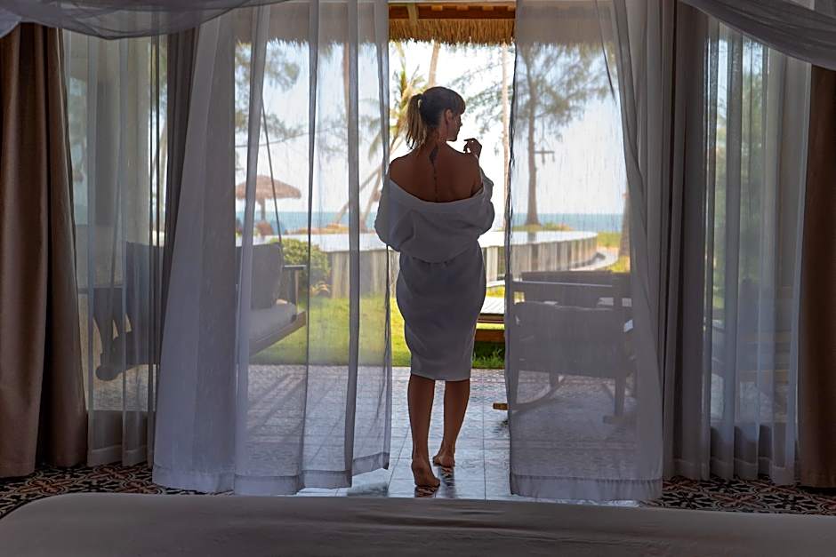 Innkvarteringen omfatter et variert utvalg av villaer og bungalower, med alternativer for hav-, hage- eller strandutsikt. Eksempler inkluderer Villa, havutsikt (65 m²) og Villa, hageutsikt (80 m²) med to queen-senger, i tillegg til Villa, 1 soverom, strandlinje, privat basseng (80 m²) for et stilig opphold ved vannet. Familieorienterte valg som Familiebungalow, hageutsikt (60 m²) gir fleksibilitet, mens flere Premium- og Breeze-alternativer presenterer ulike hav- og hageperspektiver for en minneverdig flukt.