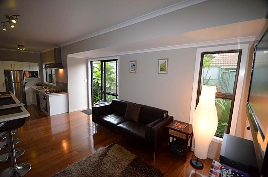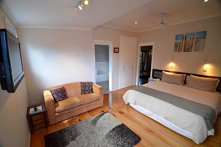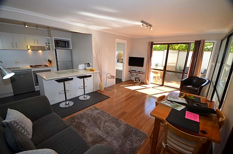 This cottage has a veranda that overlooks the garden and either a spa bath or a massage spa shower.